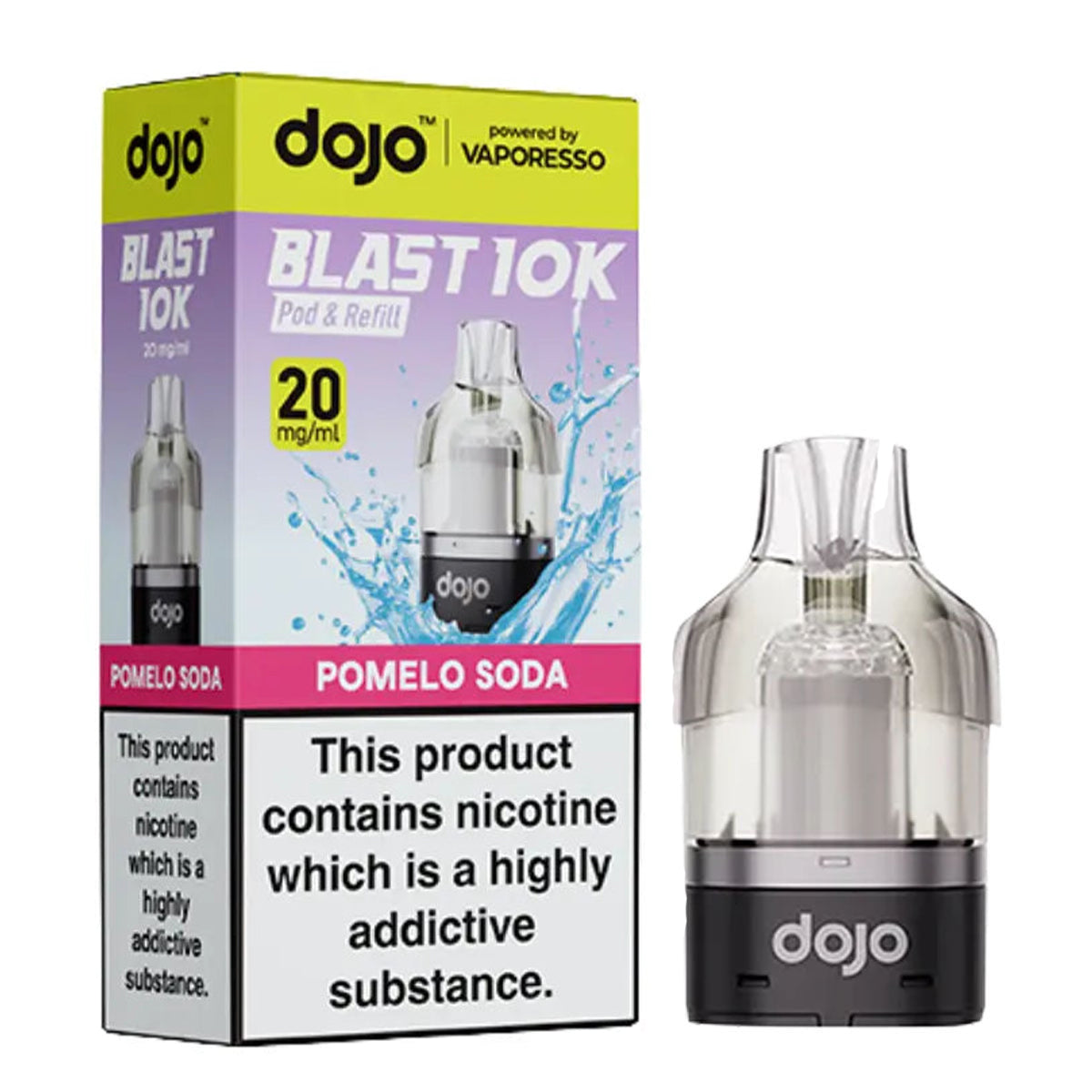 The Dojo Blast 10K pods are compatible with the Dojo 10K Blast vape kit by Vaporesso only, and not the Dojo Blast 6K vape kits previously released by Vaporesso Dojo. The Dojo Blast 10K pre-filled pod kit is available separately to purchase.